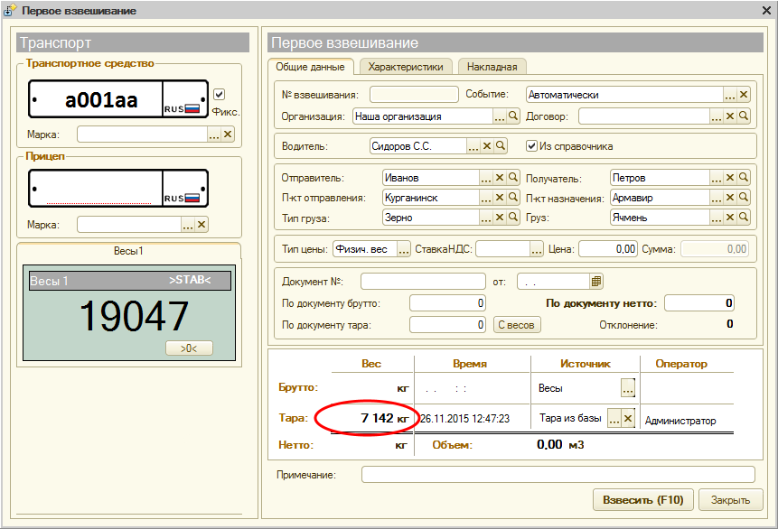 Эта процедура предназначена для того, чтобы у транспортного средства в форме взвешивания автоматически стояла «Тара из базы» в качестве источника.