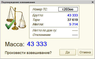 При ее нажатии, вмешательство оператора в процесс больше не требуется, система будет производить все взвешивания автоматическом режиме и результат заносить в журнал. Сама же процедура взвешивания для водителя ТС не меняется и происходит так же, как при двукратном взвешивании.