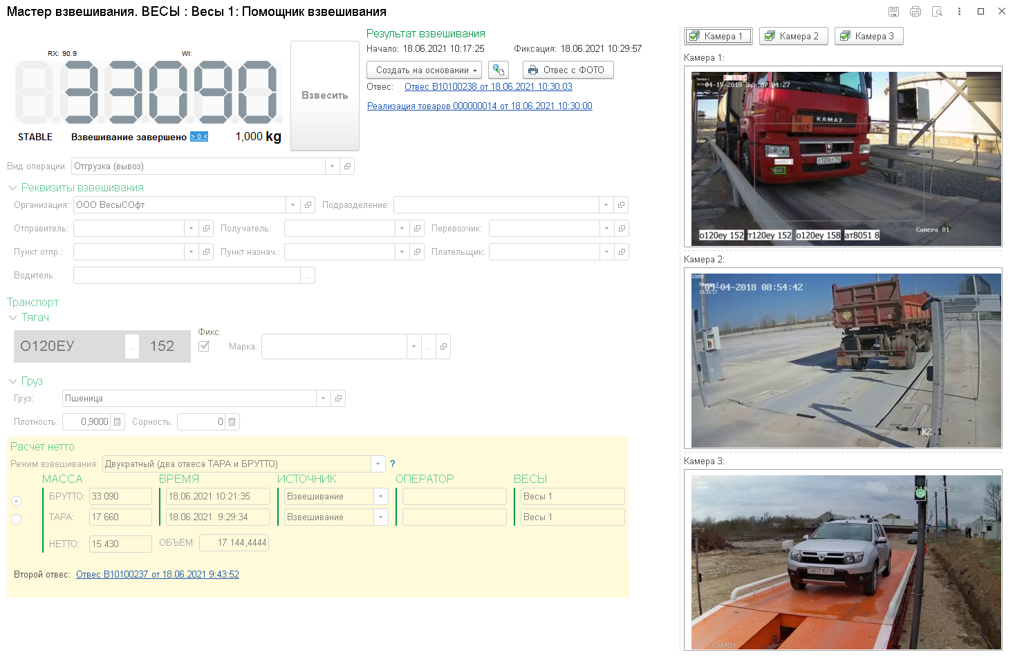 Если взвешивания производятся в автоматическом режиме, то хозяйственные документы не создаются, так как программа самостоятельно не заполняет требуемые реквизиты и хозяйственный документ на основании отвеса нужно создать вручную.
