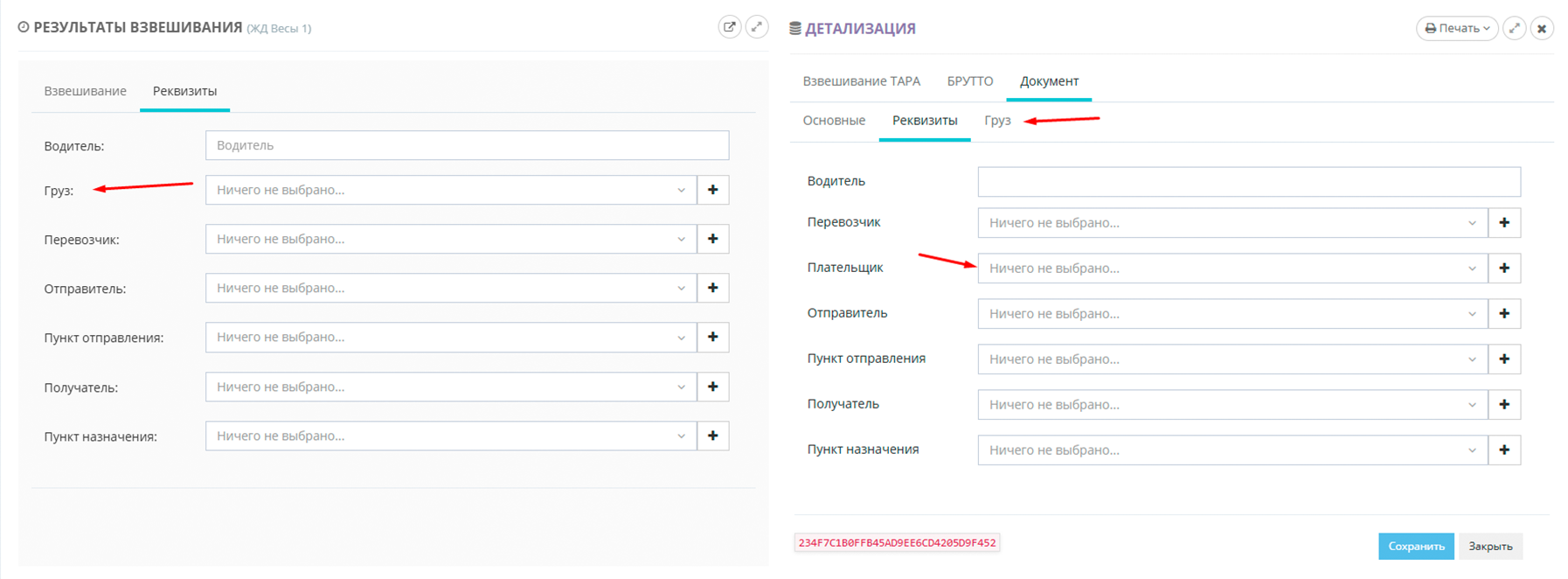 Заполнить реквизиты можно как в Мастере взвешиваний, так и в разделе Документ после взвешивания. Разница между формами заполнения показана на изображении.