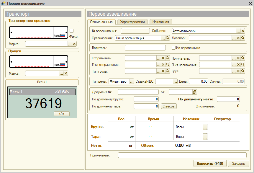 По умолчанию результат первого взвешивания автоматически запишется в БРУТТО. После второго взвешивания система сама определит, какому типу соответствует каждый отвес ТАРА или БРУТТО, и рассчитает НЕТТО. Исправлять или выбирать тип взвешивания (ТАРА или БРУТТО) не требуется.