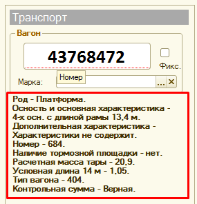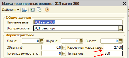 При использовании режима «Тара из справочника»,информация о типе данного вагона должна быть указана в справочнике «Марки транспортных средств». Обязательными для заполнения в справочнике являются параметры «Тип вагона» и «Расчетная масса тары».