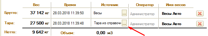 По умолчанию результат первого взвешивания автоматически запишется в БРУТТО. После второго взвешивания система сама определит, какому типу соответствует каждый отвес ТАРА или БРУТТО, и рассчитает НЕТТО. Исправлять или выбирать тип взвешивания (ТАРА или БРУТТО) не требуется.