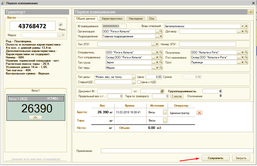 - Происходит автоматическое занесение номера вагона в форму мастера взвешивания.