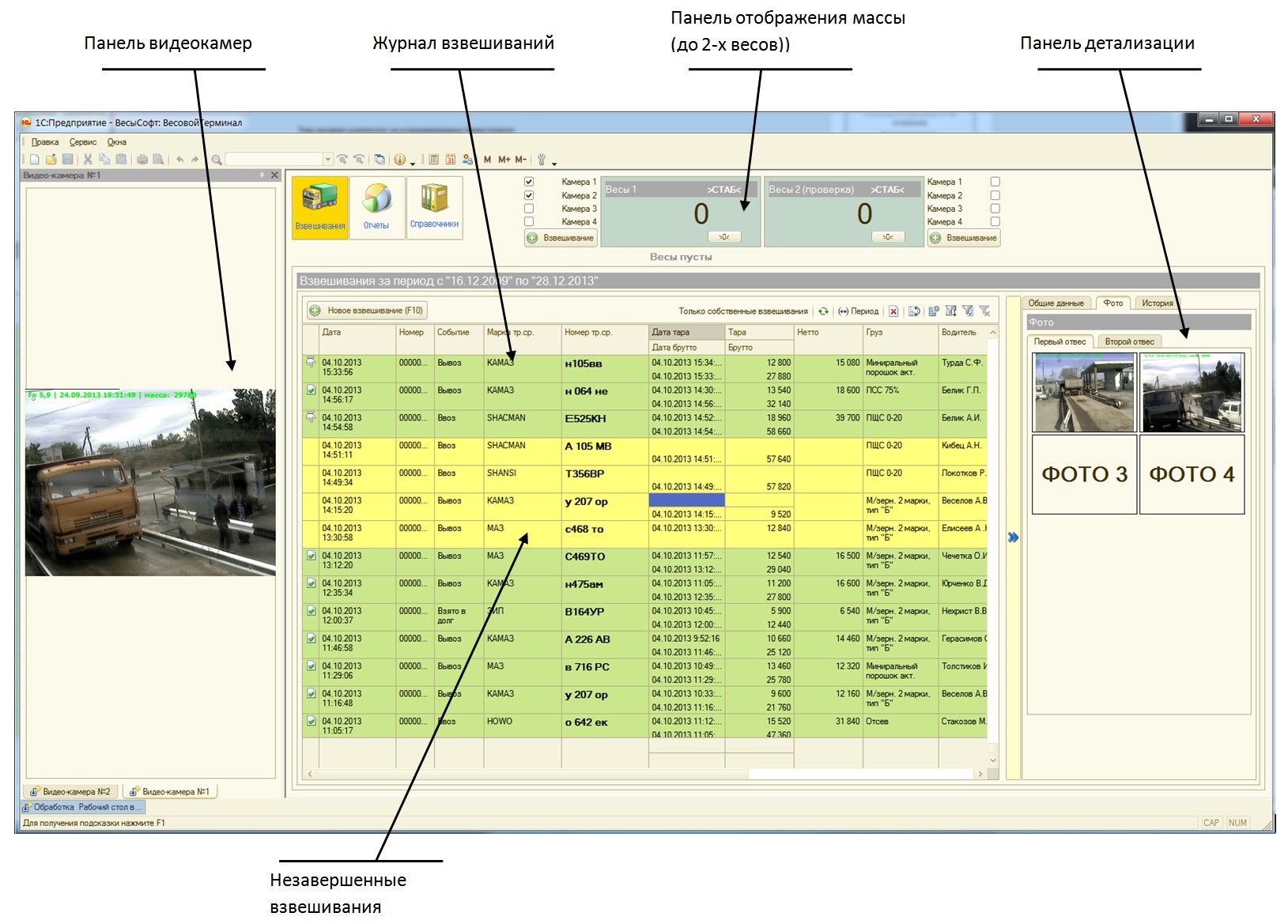 ПО "Сервер ВЕСЫ АВТО" - это служба Windows, которая выполняет функции драйвера оборудования автоматизации взвешивания (камеры, метки, светофоры, шлагбаумы..), наделяет 1С дополнительными функциями, также производит скрытый от пользователя контроль и аудит за взвешиванием и действиями операторов. Эта часть системы работает отдельно и независимо, и имеет интерфейс для доступа администратора, оператору взвешивания (весовщику) все настройки и журналы ПО «Сервер ВЕСЫ АВТО» недоступны.
