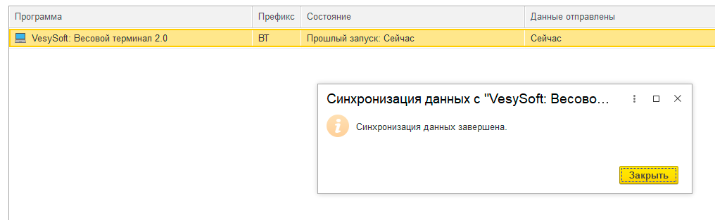 Жмем Готово и возвращаемся в первую конфигурацию ВесыСофт: Весовой терминал 2.0 - ВТ.