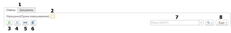 - Включение/отключение режима упрощенного отображения таблицы взвешиваний