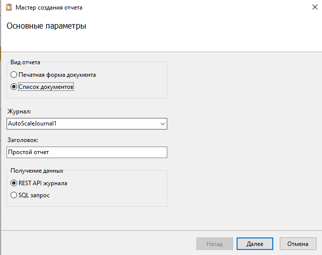 Создание простого отчета по списку документов (записей) журнала
