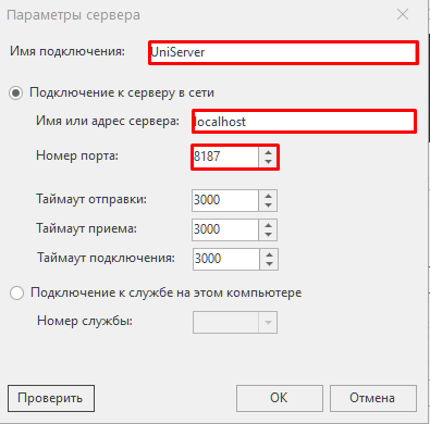 - После ввода данных нажмите кнопку проверить. Если данные верны, появится окно с сообщением «Подключение прошло успешно» и версией сервера.