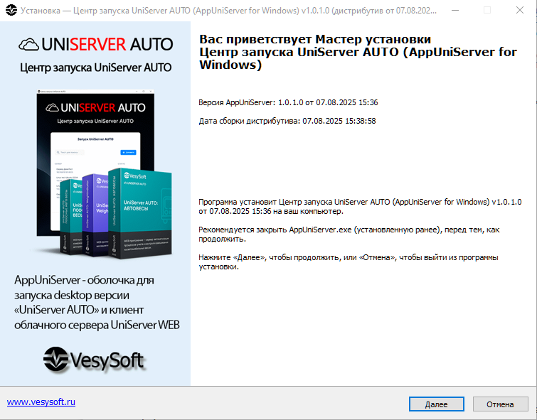 - Запустите установочный файл SetupUniServerAUTO_*.exe.
