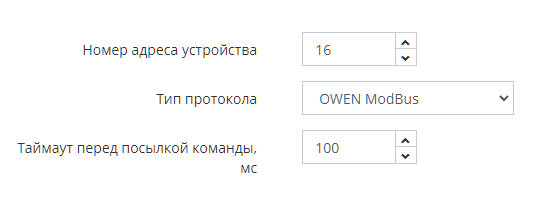 - Тип протокола - протокол обмена УДВВ с программой - OWEN MODBUS