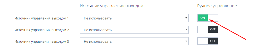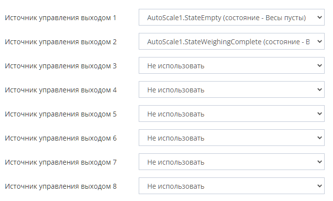 - Настройте автоматическое управление каждым выходом УДВВ с помощью выбора нужного источника управления.
