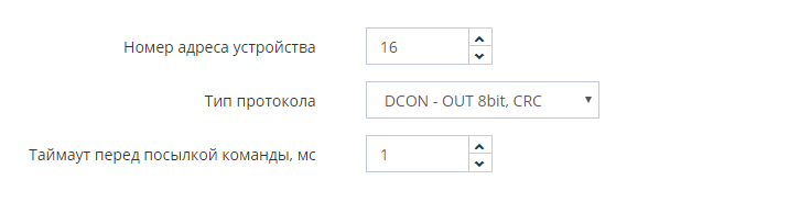 - Тип протокола - протокол обмена УДВВ с программой - DCON - OUT 8bit, CRC