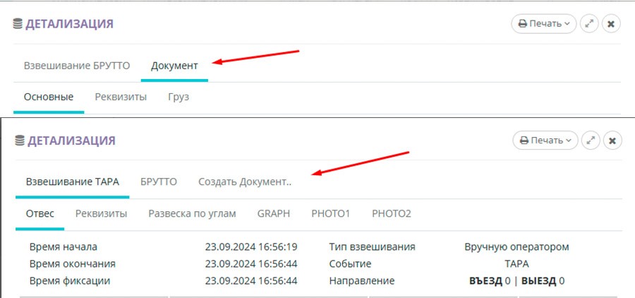 Во время процесса восстановления взвешивания система производит поиск незавершенного взвешивания по номеру ТС, и если находит его - соединяет эти два взвешивания.