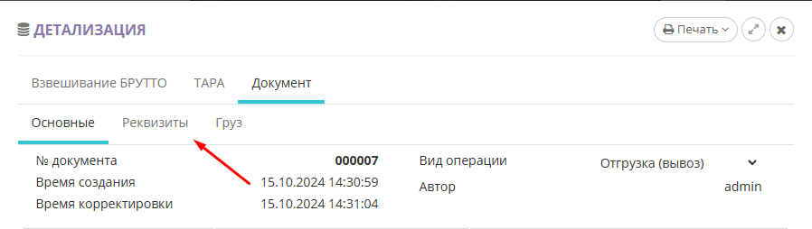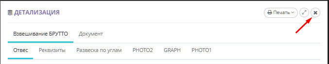 Для того чтобы распечатать результат взвешивания откройте отвес из журнала взвешиваний кнопкой «Детализация»