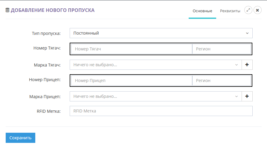 Перед началом работы необходимо заполнить Журнал пропусков: из него будет браться пропуск и основная информация о транспорте. Если учет необходимо вести по наименованиям контрагентов, также следует заполнить справочник Контрагентов.