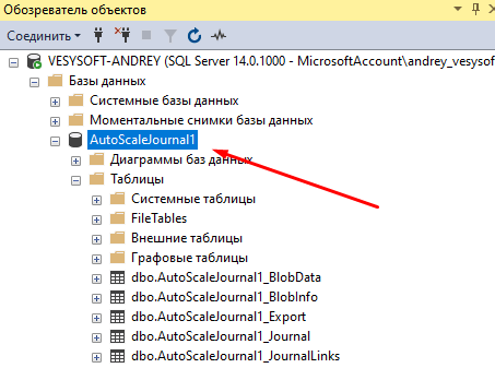 Настройка журнала (справочника) на использование СУБД "Microsoft SQL Server"