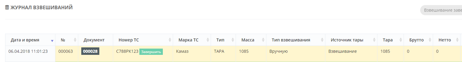 ПО "UniServer AUTO". Пошаговая инструкция для весовщика (режим "Тара из базы")