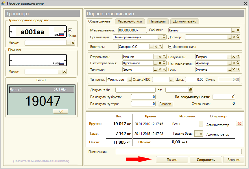 Поля «Тара по трафарету», «Брутто по трафарету» и «Предельный вес с грузом» служат для режима «Тара из справочника». Их заполнять не нужно.
