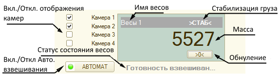 Рекомендуем настроить вид рабочего стола весовщика, как на рисунке ниже. Вынесение окон видеокамер поможет избежать путаницы в наблюдении и обеспечит комфорт при работе.