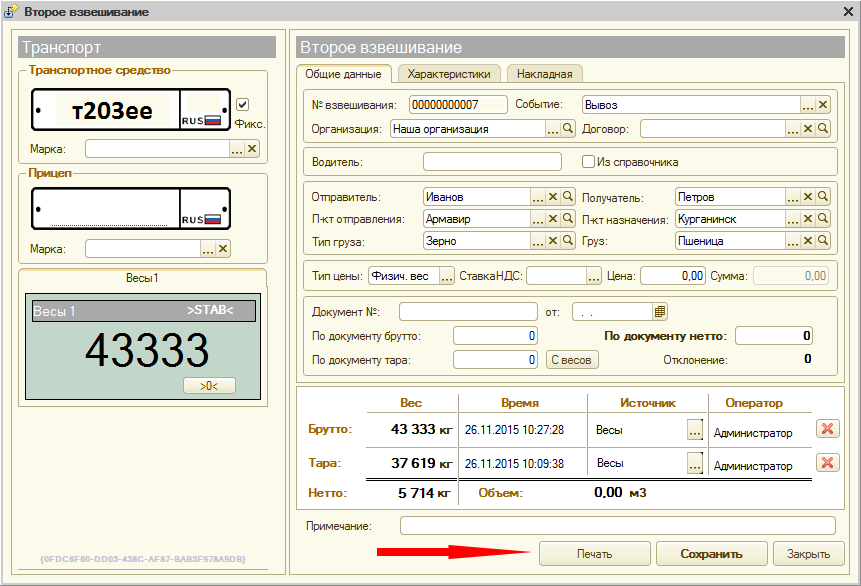 В форме мастера взвешивания при нажатии кнопки «Печать» откроется список доступных печатных форм, которые оператор может распечатать для водителя прямо на рабочем месте. В «Справочники» должны быть заполнены все необходимые поля реквизитов и контрагентов.