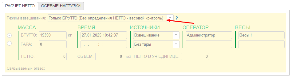 В журнал добавляется строка с новым взвешиванием (выделенная зеленым цветом). Если запись не появилась, нажмите кнопку «Обновить» на панели журнала.