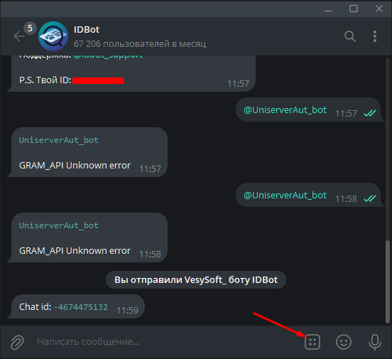 Узнайте номер вашего чата с помощью бота @username_to_id_bot (IDBot). Чтобы узнать номер чата, на примере IDBot: откройте кнопки бота IDBot.
