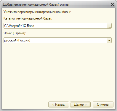 - Выберите пункт «Создание новой информационной базы» и нажмите «Далее».