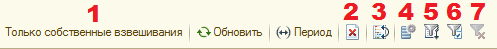 Панель инструментов необходима для удаления, фильтрации и сортировки записей таблицы журнала взвешиваний