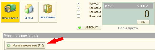 - В окне журнала взвешиваний нажмите «Новое взвешивание».