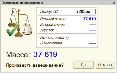 При ее нажатии, вмешательство оператора в процесс больше не требуется, система будет производить все взвешивания автоматическом режиме и результат заносить в журнал. Сама же процедура взвешивания для водителя ТС не меняется и происходит так же, как при двукратном взвешивании.