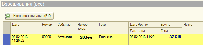 - Проводить документ. При автоматическом взвешивании, все документы взвешивания попадая в журнал проводятся, без необходимости подтверждения оператором.