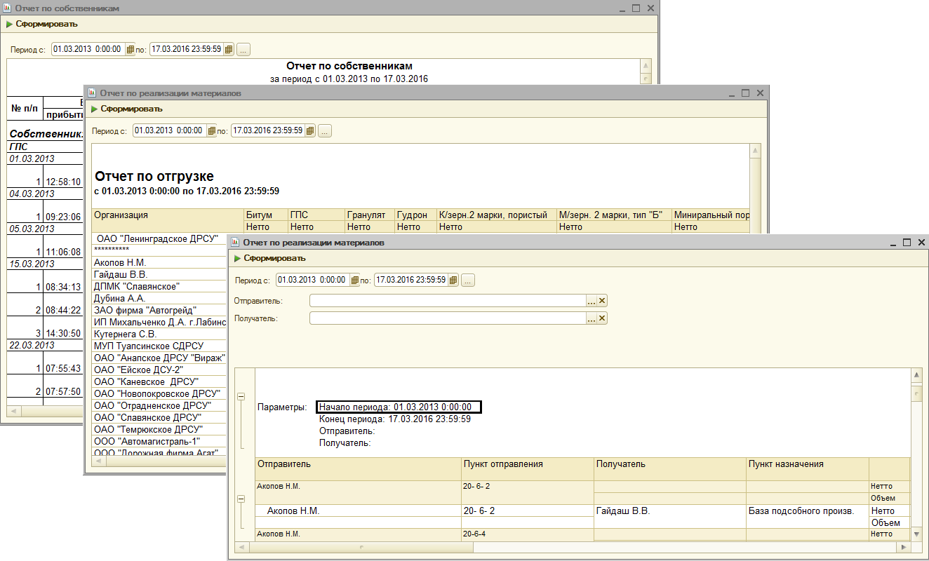- Отчет по реализации материалов