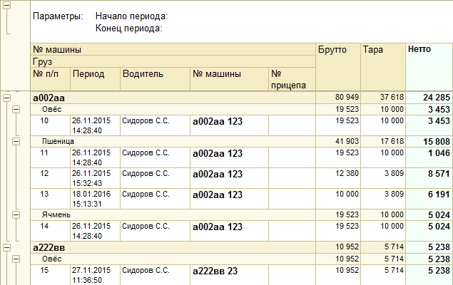 Отчеты Зерно АвтоВесы