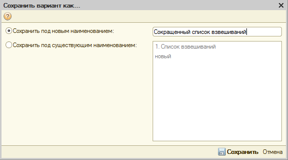 Чтобы сохранить отчет с удобными для Вас настройками и параметрами, нажмите кнопку «Сохранить вариант как», и укажите новое название, либо перезапишите уже существующий отчет.