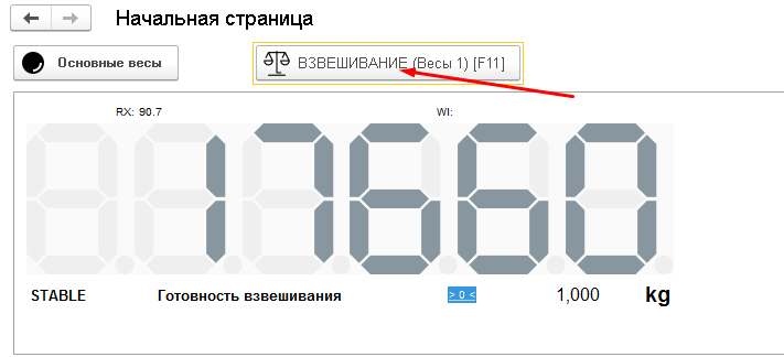 - Нажмите на кнопку «ВЗВЕШИВАНИЕ»
