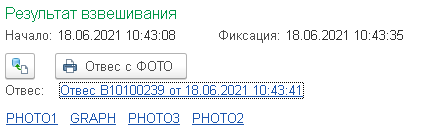 - После завершения взвешивания справа от кнопки «Взвесить» будут отображены результаты взвешивания , а также ссылка на отвес.
