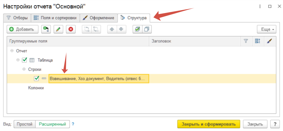 3. Формирование отчёта с добавлением в таблицу дополнительных реквизитов.