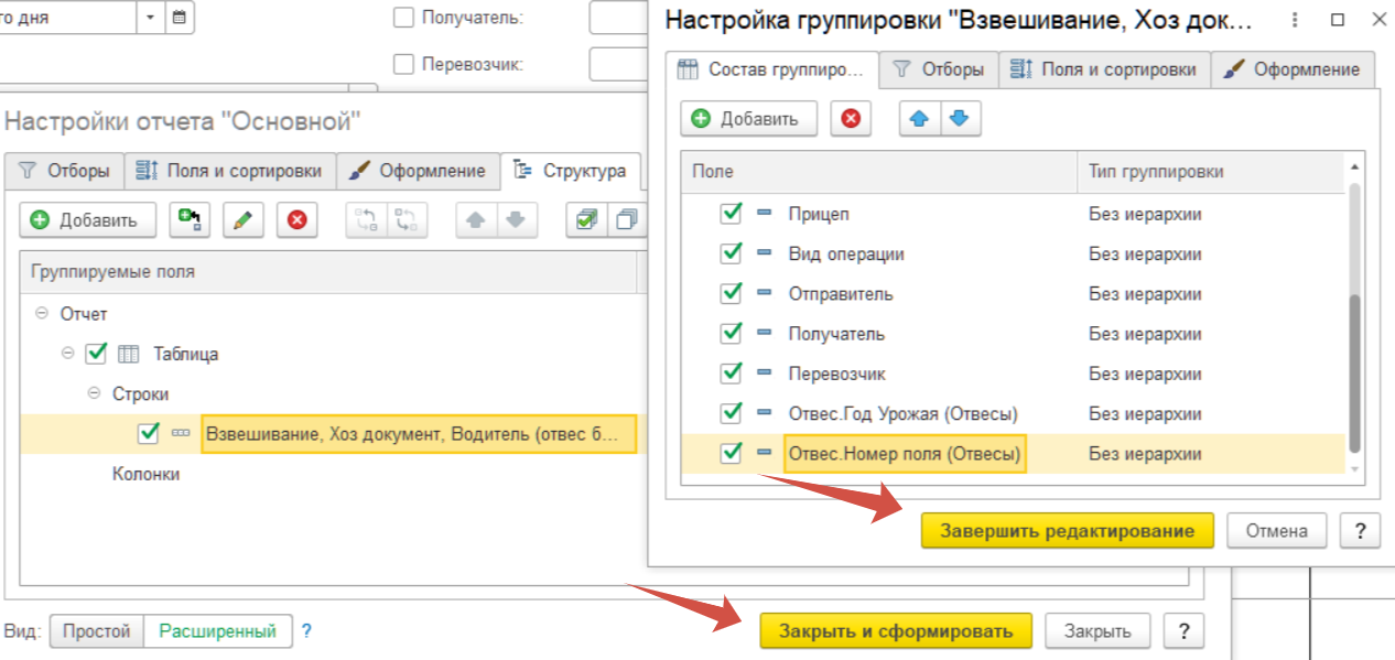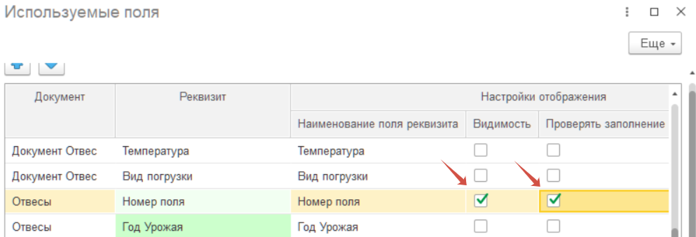 Проверяем в сформированном отчёте наличие дополнительных реквизитов «Год урожая» и «Номер поля».