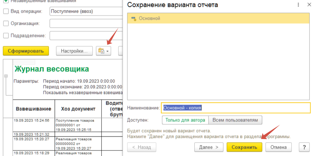 Далее необходимо сохранить вариант отчета для дальнейшего его использования. Для этого нажимаем на кнопку «Выбрать другой вариант отчета или сохранить новый», ввести наименование отчёта и нажать на кнопку «Сохранить».
