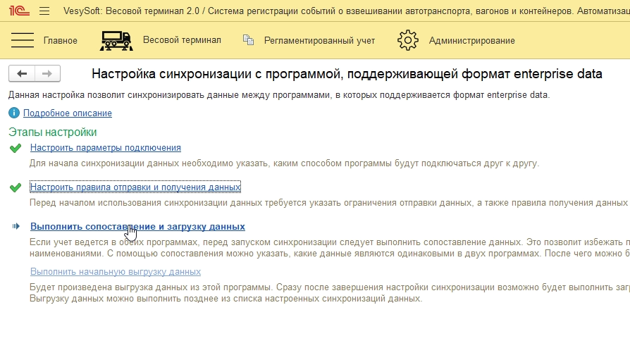 Выбираем Обмен с Vesysoft: Весовой терминал 2.0 и переходим по ссылке Настроить параметры подключения.