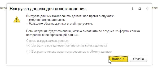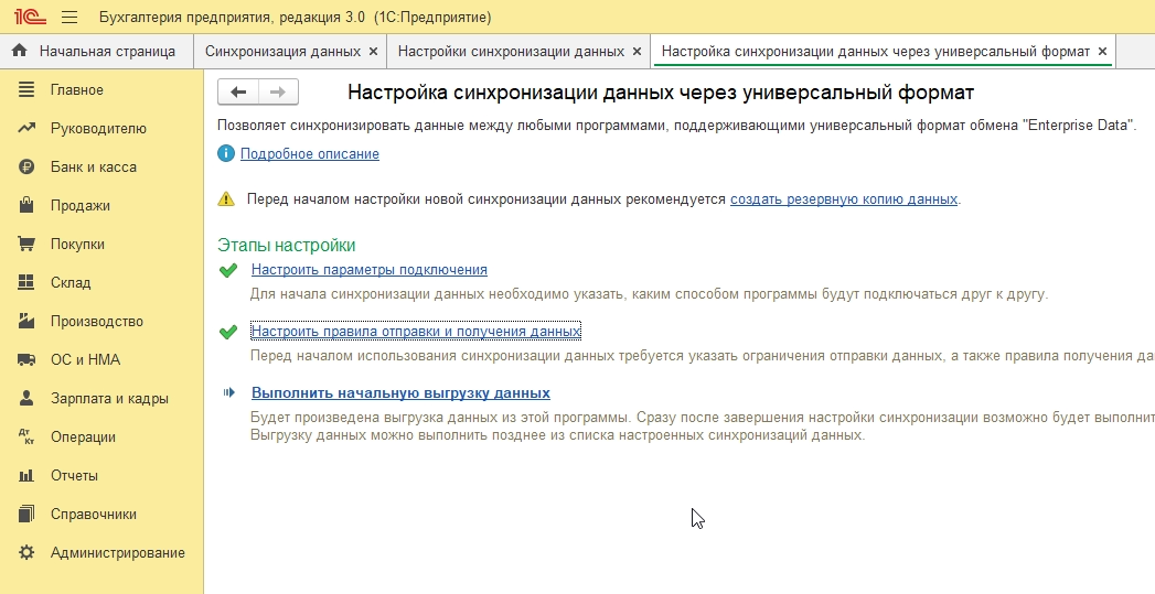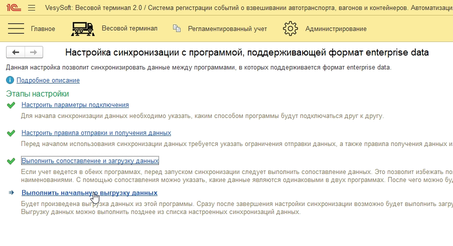 Последний этап настройки Выполнить начальную выгрузку данных.