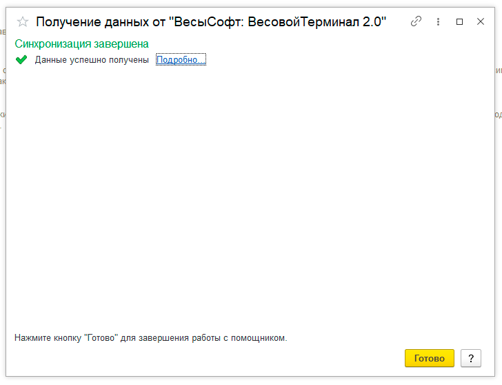 Жмем Готово и возвращаемся в первую конфигурацию ВесыСофт: Весовой терминал 2.0 - ВТ.