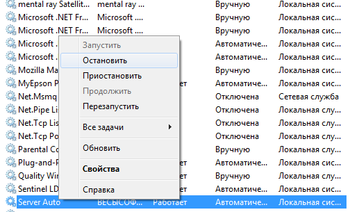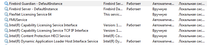 Таким же обзом отключите службы «Firebird Guardian - DefaultInstance» и «Firebird Server - DefaultInstance» и службу VesyWebService, если она установлена.
