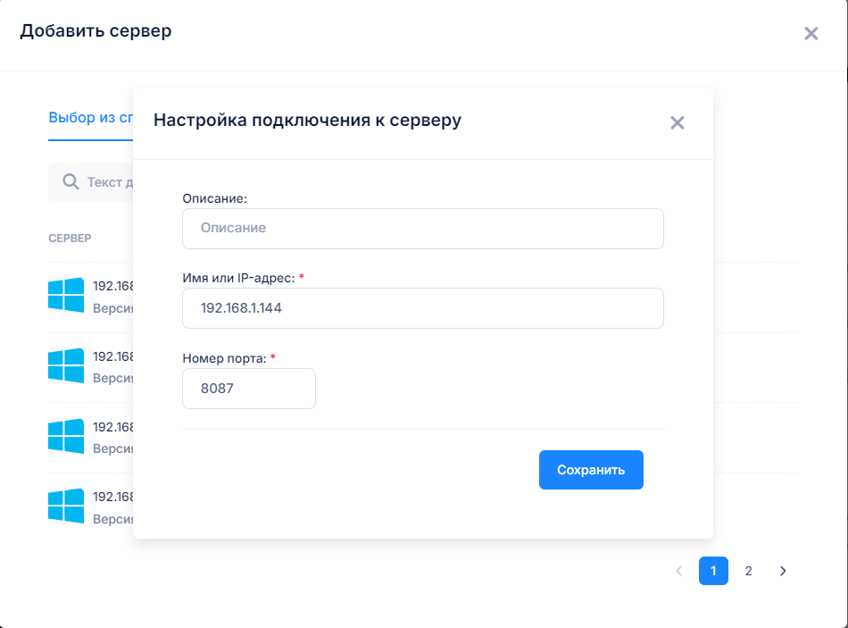 - Для добавления в список нового сервера нажмите кнопку «Добавить».