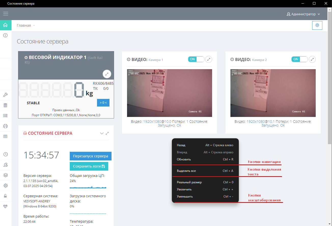 - На странице UniServer AUTO кликните правой кнопкой мыши чтобы вызвать меню редактирования отображения. С помощью кнопок «Увеличить», «Уменьшить» и «Реальный размер» настройте размер отображения. С помощью кнопки «Выделить все» вы можете выделить весь текст на странице, а когда текст выделен вручную доступна кнопка «Копировать». С помощью кнопок «Назад» и «Вперед» вы можете осуществлять навигацию в программе. Кнопка «Обновить» обновляет страницу.