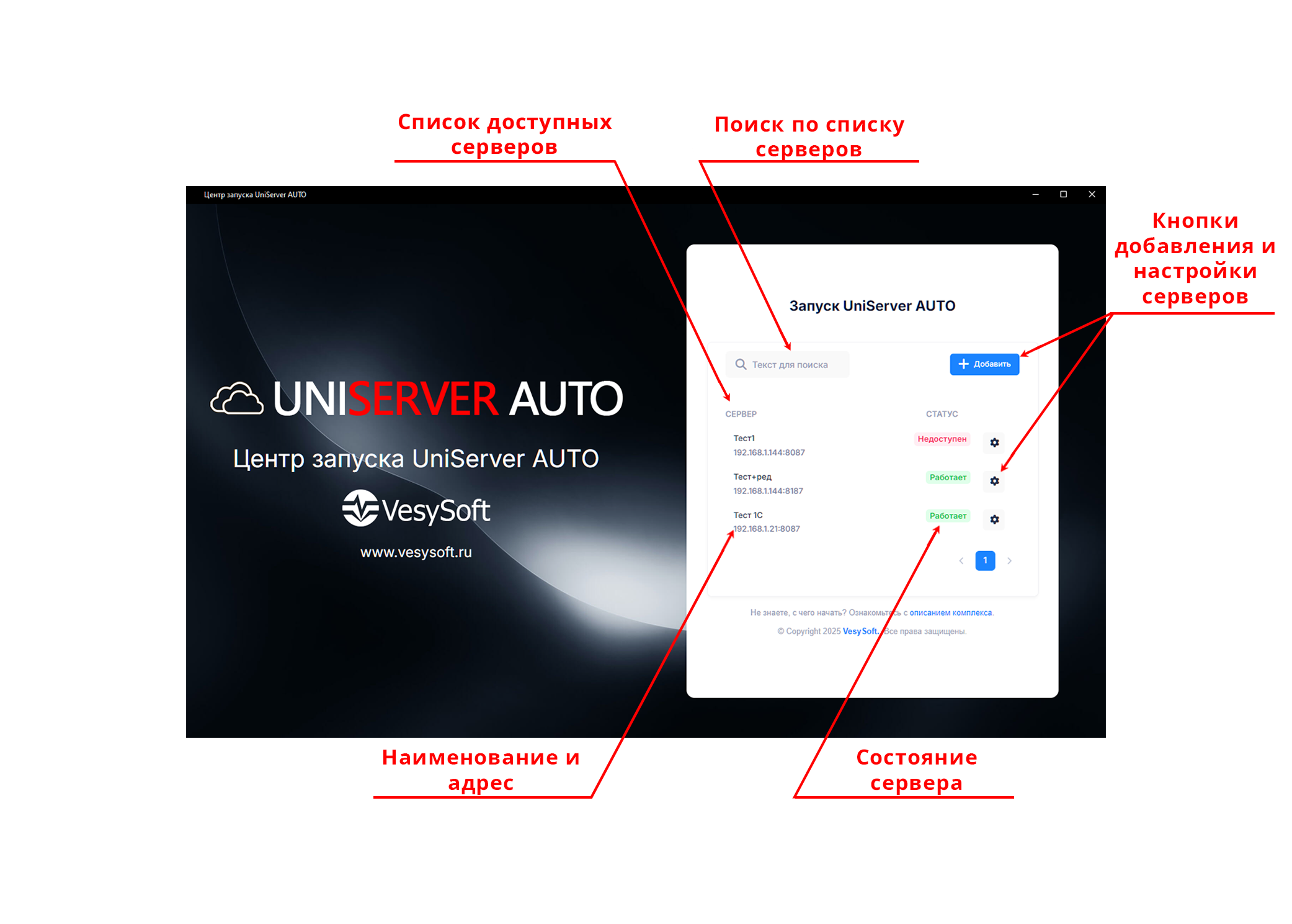 Для удобства работы имеется настраиваемый список доступных серверов UniServer AUTO.