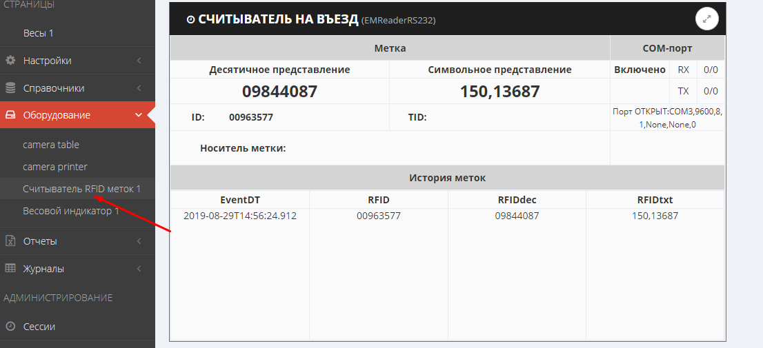 Настройка подключения сканера RFID (считывателя RFID меток)