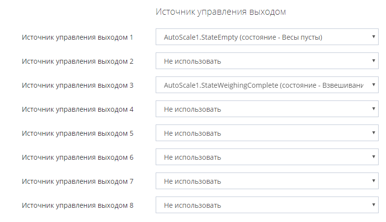 - Настройте автоматическое управление каждым выходом УДВВ с помощью выбора нужного источника управления.