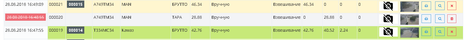При работе возможны случаи не правильного соединения первого и второго взвешиваний (например, если не верно указан номер ТС).